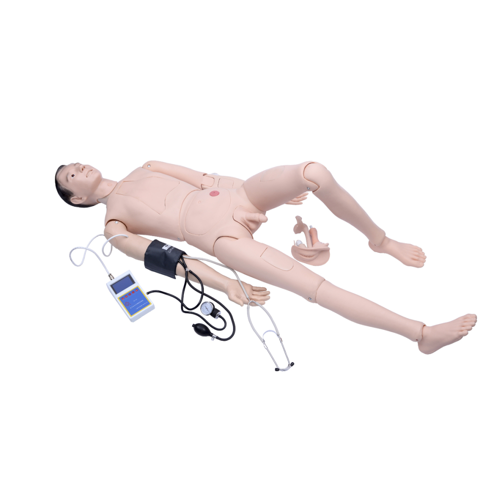 Para treinamentos mais avançados, o manequim oferece funções como cuidados de traqueostomia, injeção intravenosa, injeção no músculo deltoide, injeção intramuscular, transfusão de sangue, coleta de sangue, cateterismo masculino e feminino, enema, estomia transrenal percutânea e estudo anatômico do tórax e cavidade abdominal com órgãos vitais simulados.