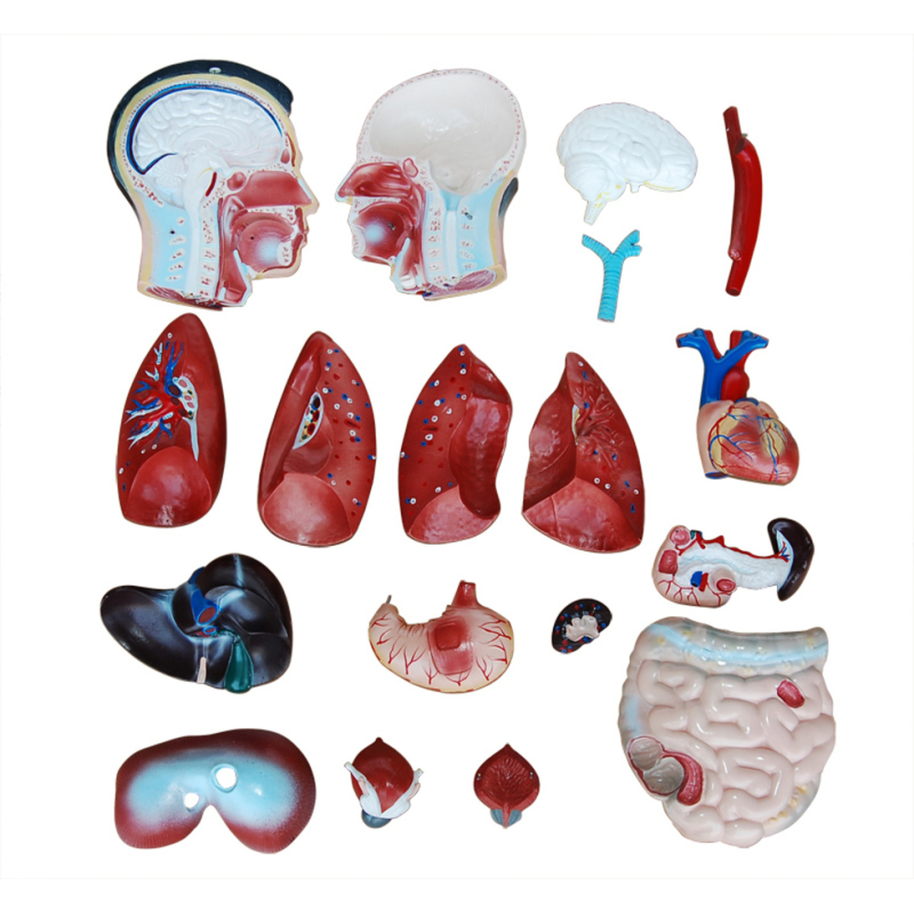 Quantidade de partes: 19 (tronco, cabeça em 02 partes, cérebro, pulmões em 04 partes, coração, traquéia, esôfago e aorta descendente, diafragma, estômago, duodeno com pâncreas e baço, intestinos, rim, fígado e bexiga em 02 partes)